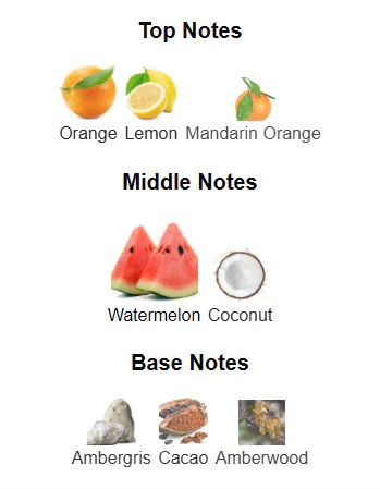 Top Notes: Orange, Lemon, Mandarin Orange
