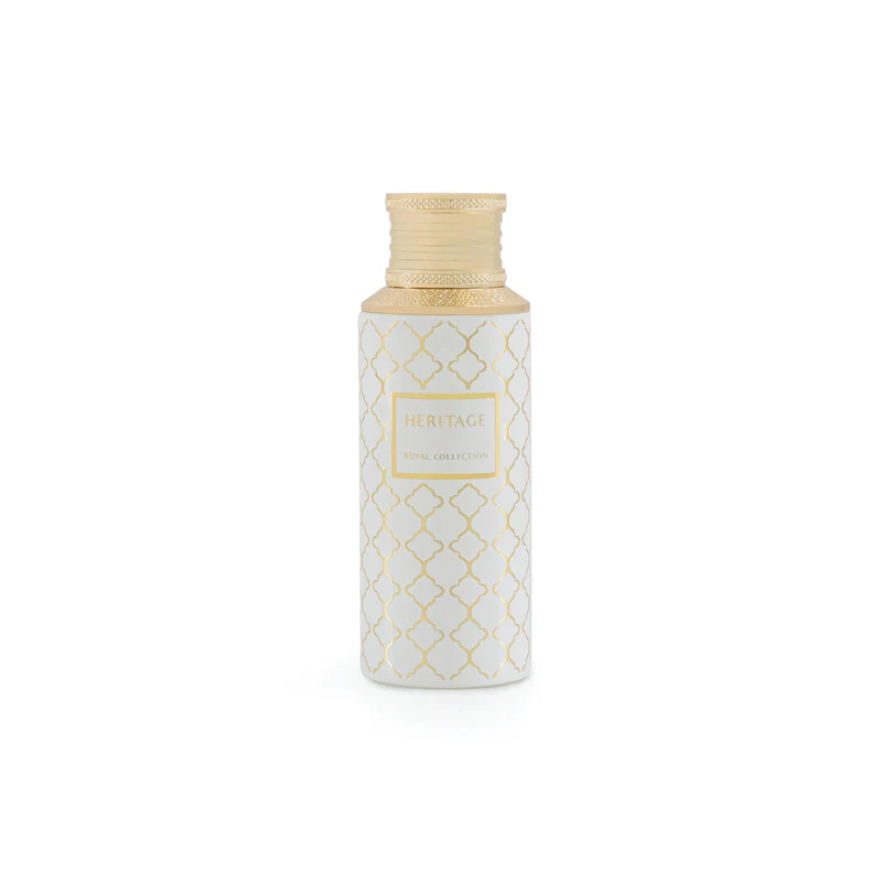 Heritage is an exquisite fragrance that takes you on a sensory journey with its unique notes. The opening of Fresh Citrusy notes and delicate Floral notes blends perfectly with heart notes of Coconut and exotic Fruits, leading to a base of Musky and Sweet notes. Elevate your senses and immerse yourself in opulence with this remarkable fragrance.