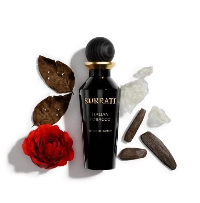Italian Tobacco by Surrati evokes the refined warmth of fine tobacco leaves blended with refined botanicals and woods. It opens with rich leather and white amber, followed by a distinctive heart of tobacco and rose. The base anchors the scent in comforting musk and aromatic woods. Unisex and bold, this fragrance makes a statement of sophistication and depth.